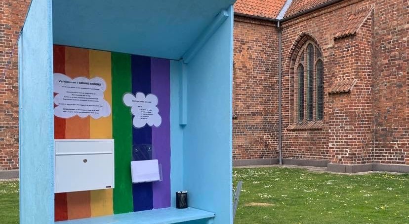 Der er også andre måder, man kan fejre bededagen på afstand. I Køge Kirke har de for eksempel sat et bønneskur op, hvor man kan gå ind og skrive en bøn. Alle bønner bliver læst op i kirken store bededag og delt på sociale medier og kirkens hjemmeside.