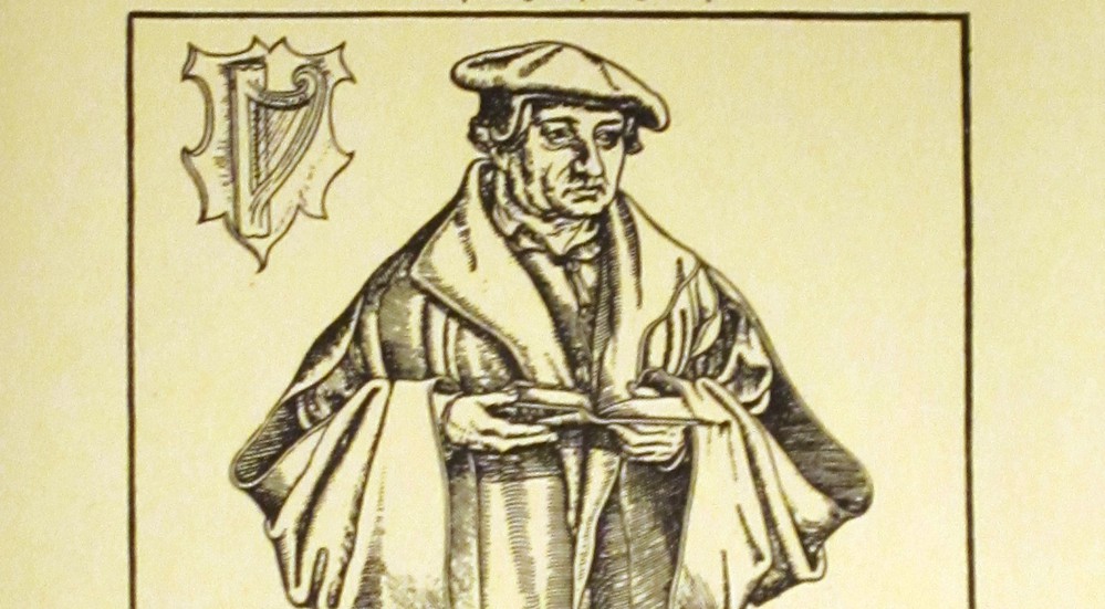 Træsnit af reformatoren Johannes Bugenhagen, Lucas Cranach d. Ældre, 1546 (udsnit). Bugenhagen boede i København i 1537-39, og han spillede en stor rolle for organiseringen af den lutherske kirke i Danmark.